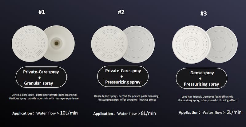 El panel de salida reemplazado se puede ofrecer en conjunto, por lo que hay más opciones de rociado para los miembros de la familia, que pueden elegir el patrón de rociado que les encanta cambiando fácilmente el panel